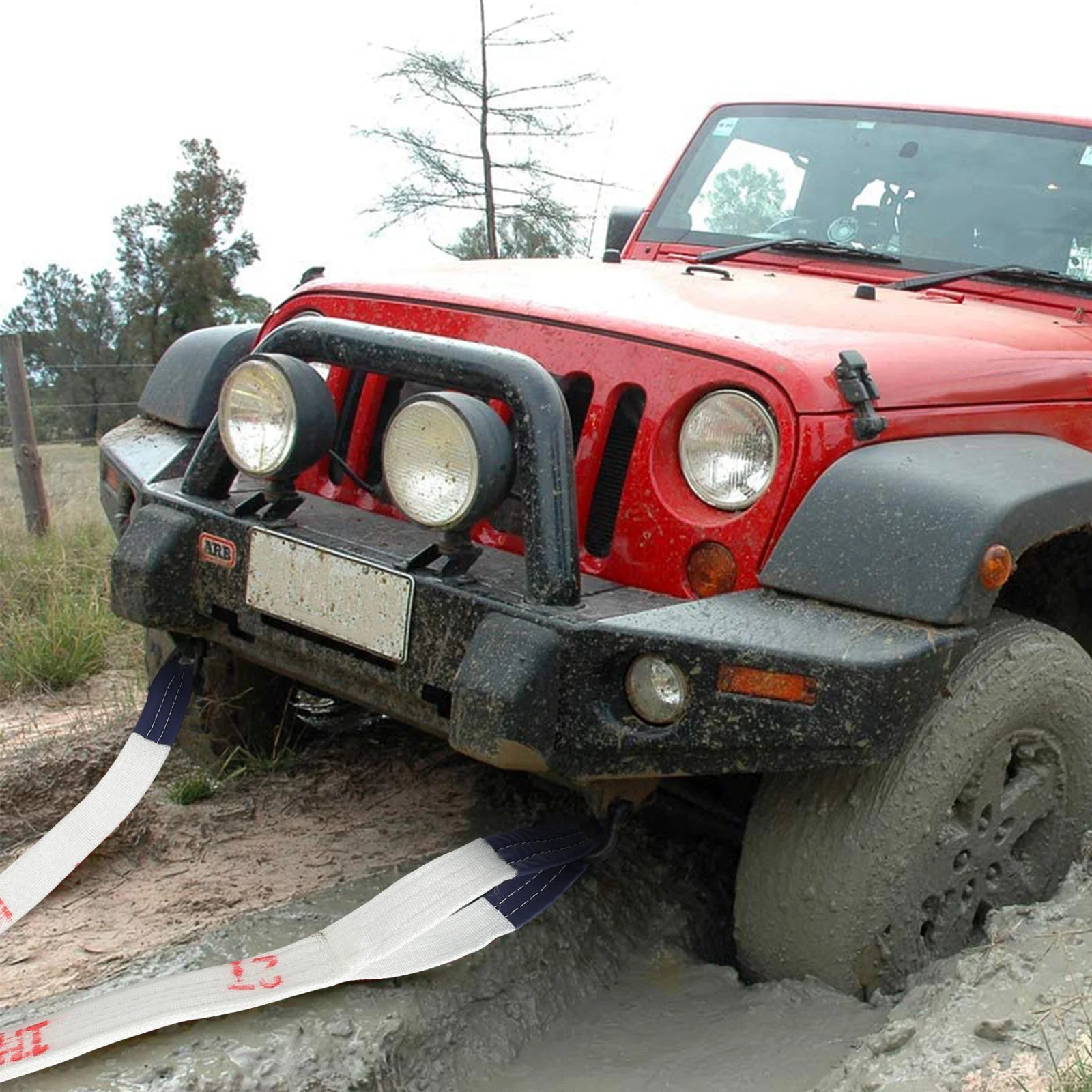 Avoid a chain through your windshield with this heavy duty recovery strap, even if it were to break (which so long as you don't full throttle send it, is virtually impossible), you will surely be safe.