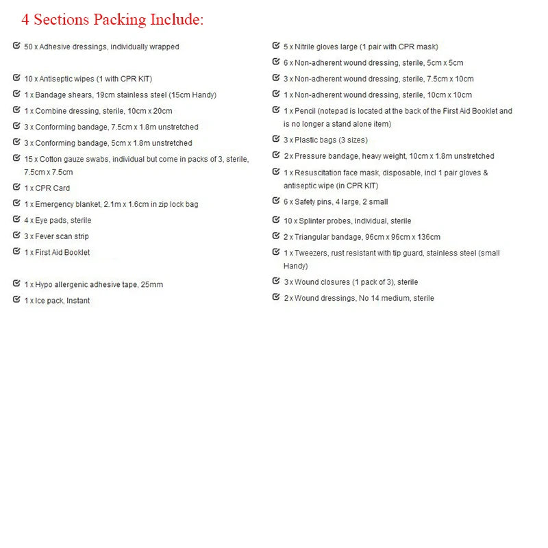 19. 1 x Pencil (notepad is located at the back of the First Aid Booklet and is no longer a stand alone item)