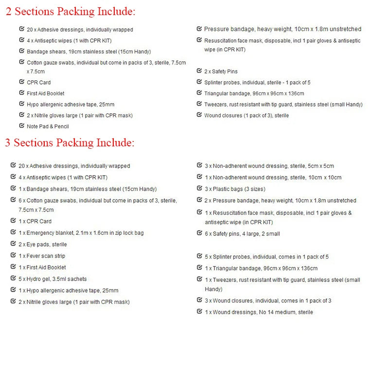 2 Sections Packing Include: